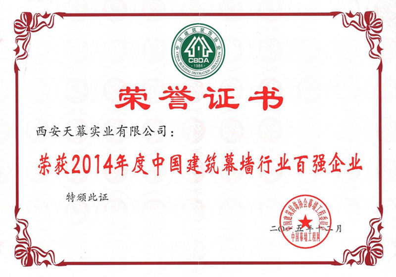2014年度中國建筑幕墻行業(yè)百強企業(yè)