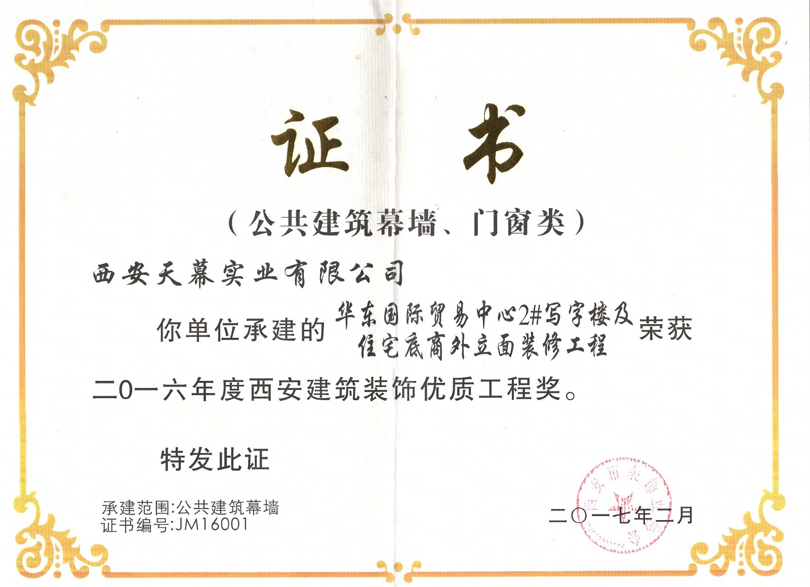 2016年“雁塔杯”——華東國際貿(mào)易中心2#寫字樓