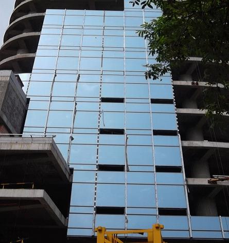 單元式幕墻是國際上近年出現(xiàn)的高檔建筑外圍護(hù)系統(tǒng),是建筑產(chǎn)品工廠化的產(chǎn)物,代表著建筑外圍護(hù)系統(tǒng)的未來發(fā)展方向。其構(gòu)成原理是:幕墻是在工廠中制成一單元組件,這種組件一般為一個(gè)樓層高度,也可以為2-3層高,一個(gè)單元組件就是一個(gè)受力單元。安裝時(shí)將單元組件固定在樓層樓板(梁)上,水平方向相鄰兩單元組件的左右豎框通過對(duì)插形成豎向組合,上單元下框與下單元的上框?qū)Σ褰M合成橫向組合,這樣它所承受的載荷是由單元組件的豎框直接傳遞到主體結(jié)構(gòu),它的分格接縫不在整體桿件上,而是兩相鄰單元組件的框通過對(duì)插形成組合桿。單元幕墻的最突擊的特點(diǎn)是安裝速度快,可與土建同步施工。