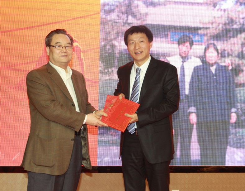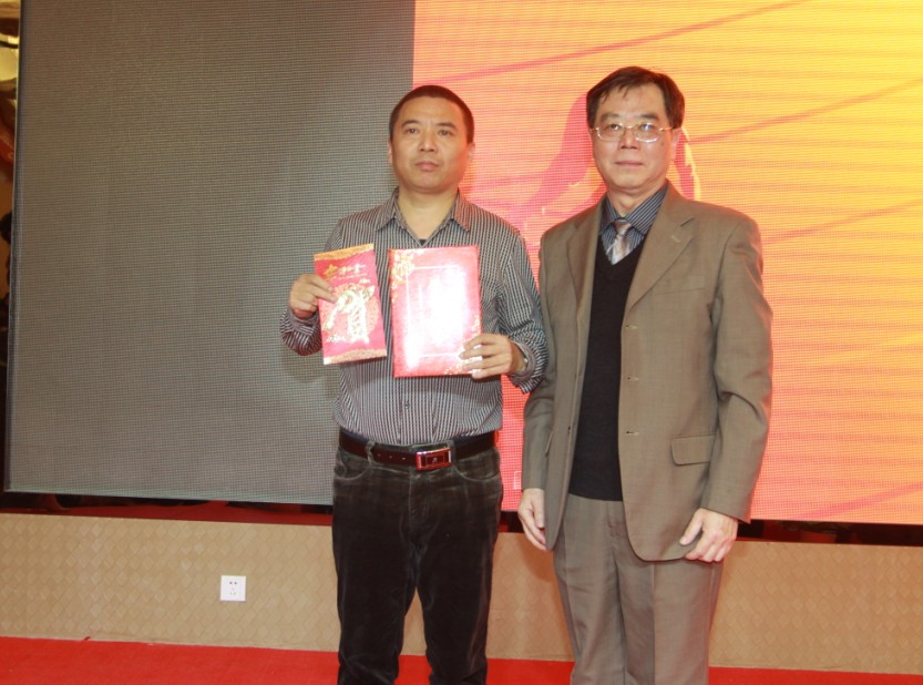 省裝飾協(xié)會會長張恒亮先生為孝心獎獲得者吳劍頒獎