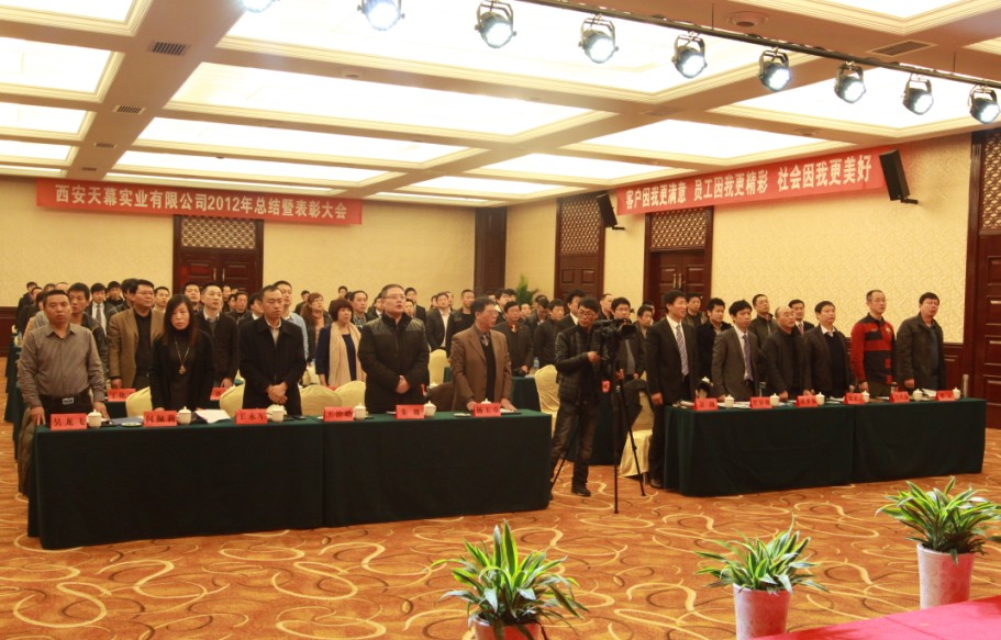 2013年3月1日,西安天幕實(shí)業(yè)有限公司“2012年總結(jié)暨表彰大會(huì)”在海升酒店舉行,參加這次大會(huì)的主要領(lǐng)導(dǎo)有公司各部門領(lǐng)導(dǎo)、各分公司領(lǐng)導(dǎo)及特邀嘉賓,會(huì)上由總公司和各個(gè)分公司及各個(gè)部門做工作報(bào)告到員工代表講話。企業(yè)并對(duì)在2012年作出突出貢獻(xiàn)的部門及個(gè)人頒發(fā)了優(yōu)秀部門和先進(jìn)個(gè)人獎(jiǎng)項(xiàng),會(huì)場(chǎng)氣氛莊重而熱烈。