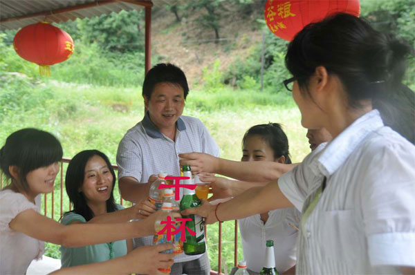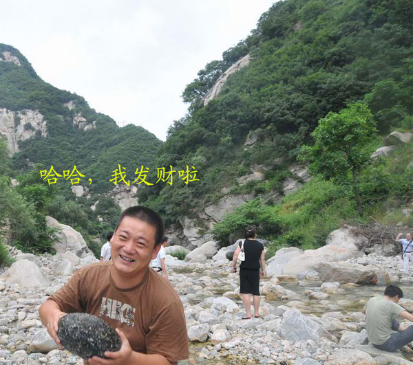 要說(shuō)這畫中再缺點(diǎn)什么呢?o(∩_∩)o 哈哈……當(dāng)然是我們啦!繁忙的工作之余,來(lái)到山清水秀自然界的懷抱里,深吸一口清新的空氣,跳上河邊的石頭,擺一個(gè)擁抱大自然的POSE,綻放出最迷人的笑容。清涼的水底,各色各樣的石頭吸引了我們大家的目光,忍不住把它們一個(gè)個(gè)撿起來(lái),細(xì)細(xì)欣賞;還有那些比蝌蚪還要小的魚,在屬于他們的世界里盡情嬉戲。同事們有的已開(kāi)始拍照留影,讓這片刻永遠(yuǎn);有的在揀自己喜歡的石頭,想裝進(jìn)口袋,想帶回家;有的人嬉水打鬧,在久違的返璞歸真里,我們忘記了煩惱、淡漠了壓力,找回了自己….路邊偶爾傳來(lái)山民們賣水果的吆喝聲,或高或低,聲聲都透著一種水果的新鮮味兒…..