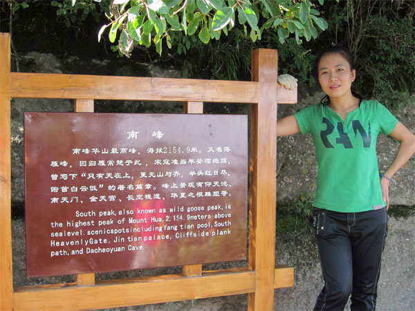 一提到西峰我便想到電視劇《寶蓮燈》里面的“劈山救母”,一口氣爬到西峰頂,果真,一塊巨石齊茬茬地被截成三節(jié)。巨石旁邊插著一把兩米多高的月牙鐵斧。這就是神話傳說(shuō)中的沉香劈山救母用的大斧吧!華山可謂到處是奇觀,到處是美景,到處是傳說(shuō),怪石簡(jiǎn)直妙不可言,景致美不勝收!南峰是華山五峰當(dāng)中最高的峰,這是我們從南峰頂上的碑文看到的。它是華山景點(diǎn)的標(biāo)準(zhǔn),從山頂望下去看一眼,保準(zhǔn)心里久久不能平靜。旁邊有座廟宇,正中擺著太上老君的煉丹爐……今天終于在讓我給碰上了,看了又看,摸了又摸,感覺(jué)自己好像是劉姥姥進(jìn)大觀園,我眼花繚亂??!呵呵…