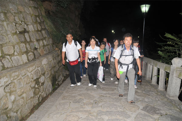 當(dāng)晚十點多,我們一行12人來到了華山腳下,稍做休整,便開始了我們的攀登之旅。