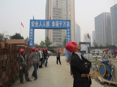 工地的參觀學(xué)習(xí)對我們來說是必要的,也是必須的,通過對工地的實際參觀我們才能了解到一些工程施工過程中的具體問題。剛進入施工現(xiàn)場我們可以明顯的看到工地上堆放建材有一定的規(guī)范。我們首先進入項目部,在項目部讓我想到的是麻雀雖小五臟俱全,項目部雖然很小,但是干凈、衛(wèi)生、整齊,主要規(guī)章制度,崗位職責(zé)、施工臺賬、總平面圖、施工進度網(wǎng)絡(luò)圖等張牌懸掛,做到辦公室整潔、衛(wèi)生。墻上掛著項目部各人員的崗位職責(zé),很明確了各崗位的職責(zé)和任務(wù)。