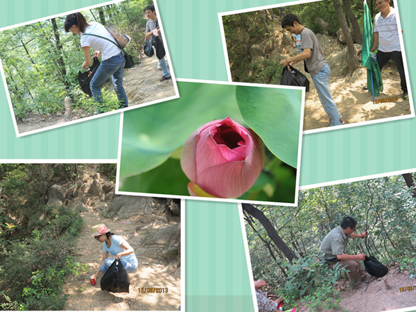 在吳總監(jiān)的帶領(lǐng)下,我們每個(gè)人手提垃圾袋沿著山路往上。一路上,風(fēng)景如畫,空氣清晰,美麗的大自然風(fēng)光不住地映入我們的眼簾,可再仔細(xì)環(huán)顧周圍,卻發(fā)現(xiàn)路兩旁不時(shí)有游客登山游玩時(shí)隨意丟棄的食品包裝袋和煙頭等垃圾。大家相互配合,認(rèn)真、仔細(xì)地清理垃圾。雖然有些垃圾比較難清理,但大家沒(méi)有皺眉頭,而是想盡各種辦法清理。我們?cè)谇謇磉^(guò)程中,不光自己清理,還很有禮貌地提醒過(guò)往的游客們將垃圾扔入垃圾箱。活動(dòng)中,有幾個(gè)游客好奇地問(wèn)我們:“你們是志愿者么?”,“不是”;“你們是自發(fā)來(lái)的嗎?”,“不是,是我們公司組織的”;“你們是哪個(gè)公司的?”,“西安天幕公司”;“你們公司的文化氣息讓人敬佩的……”,“謝謝!”等等,聽(tīng)到部分游客贊許的話語(yǔ),我們感覺(jué)到這次活動(dòng)的意義所在,不僅自己能與大自然親近,還能感染身邊的游客不要亂扔垃圾。用社會(huì)上比較流行的一個(gè)詞表達(dá),那就是傳遞了“正能量”!