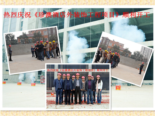 今天很有幸請(qǐng)到了建設(shè)方西安珍澳實(shí)業(yè)有限公司珍澳酒店外裝飾項(xiàng)目總負(fù)責(zé)人王總,外裝飾項(xiàng)目技術(shù)孫工。施工方西安天幕實(shí)業(yè)有限公司董事長吳總,項(xiàng)目負(fù)責(zé)吳亞軍經(jīng)理,生產(chǎn)技術(shù)負(fù)責(zé)吳潤全經(jīng)理,執(zhí)行技術(shù)負(fù)責(zé)劉經(jīng)理,質(zhì)量把關(guān)樊部長。兩大公司領(lǐng)導(dǎo)及其各相關(guān)技術(shù)負(fù)責(zé)人齊聚在長安區(qū)王寺鎮(zhèn),共同迎接一個(gè)美好的時(shí)刻?!段靼舱浒木频晖庋b飾建設(shè)工程施工項(xiàng)目》在此舉行隆重的開工慶典儀式,為本次建設(shè)工程揭開完美的序幕。我代表施工方天幕公司向工程的開工表示熱烈的祝賀!對(duì)光臨開工儀式的各位領(lǐng)導(dǎo)、各位來賓表示熱烈的歡迎并致以美好的祝愿!