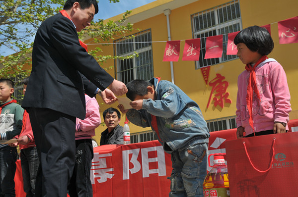 望著一張張純真的笑臉,看著一雙雙期盼的眼神,我的心被深深的感染著!當(dāng)我將一份份帶有全體天幕人心意的禮物交到孩子手中時(shí),孩子深深的一躬,讓我心潮澎湃,思緒萬(wàn)千!更讓我感到無(wú)限的自豪和欣慰,因?yàn)槲覀兘裉煸谟脤?shí)際行動(dòng)描繪著天幕愛心的畫卷……此時(shí)此刻,吳總的一句話“我是農(nóng)民的兒子”又一次回響在我的耳邊……是?。《嗝礃銓?shí)的一句話,之所以經(jīng)歷了刻骨銘心的童年,縱然有了今天的幸福生活但卻始終難以忘懷養(yǎng)育之情,感恩的情結(jié)一直深埋于吳總的每一個(gè)細(xì)胞,正因?yàn)槿绱?,才有今天天幕公司乃至每一個(gè)天幕人的善舉,回報(bào)社會(huì),盡企業(yè)的一份社會(huì)責(zé)任,吳總倡導(dǎo)天幕人用實(shí)際行動(dòng)踐行著感恩的諾言。