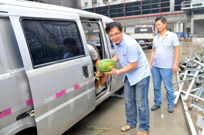 7月27日下午,頂著炎炎烈日、迎著滾滾熱浪,公司工程部副總雷曉峰、質(zhì)檢部部長王健、行政部劉新峰主任等公司相關(guān)領(lǐng)導一行5人走進高新9號廣場施工現(xiàn)場看望慰問一線建筑工人,并且為在一線工人送來了西瓜、綠豆、毛巾、白糖及茶葉等夏季防暑降溫物品,同時提醒大家,要增強安全防范意識、自我保護能力以及新安全生產(chǎn)法的學習;要求項目部要牢固樹立“安全第一、預防為主”的思想,抓好夏季防暑降溫工作,合理安排好施工人員的作業(yè)時間,改善勞動條件,確保一線工人的身體健康和施工安全。