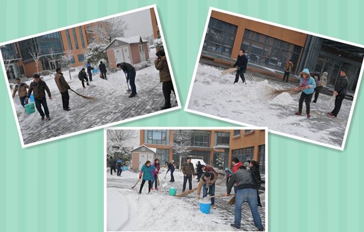 瑞雪兆豐年。1月21日夜的一場(chǎng)鵝毛大雪,將冬的素雅裝扮的分外妖嬈,遍地銀裝素裹。一大早,各位同事迎著寒冷,踏著滿(mǎn)地白雪,踩著一路柔情來(lái)到公司,顧不得抖掉身上的落雪,欣然加入掃雪隊(duì)伍。
