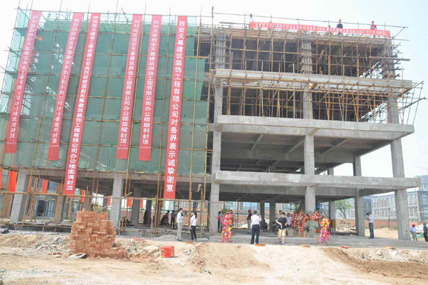 我公司辦公樓工程于2009年3月13日奠基,由奠基到主體封頂歷時119天。本工程得以順利的封頂與建設單位、監(jiān)理單位、及其他合作單位和社會各界朋友的支持是分不開的!