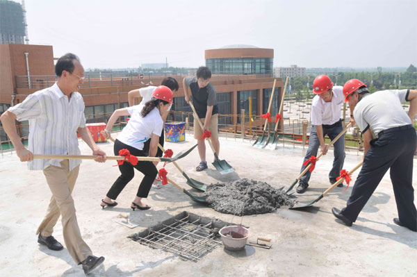 2009年7月9日我公司迎來了辦公樓主體工程封頂?shù)暮萌兆?!這天,陽光明媚,一幢拔地而起的辦公樓披上了喜慶的盛裝,一條條長長的彩帶上寫著前來賀喜單位祝賀工程封頂?shù)馁R詞。西安市長安區(qū)郭杜教育科技產(chǎn)業(yè)園領導及各界朋友與我公司員工一起參加了封頂儀式。在儀式上施工企業(yè)西安五龍公司第三項目部盧經(jīng)理、監(jiān)理企業(yè)陜西國正建設工程監(jiān)理公司楊總均表示該工程按期、保質、保量的完成了階段性任務,并且有決心在辦公樓后期工程中一如既往。公司吳總代表公司對施工單位的施工進程、質量等予以充分肯定,向日夜戰(zhàn)斗在辦公樓建設工地的全體建設者致以誠摯的問候,希望各參建單位、施工人員繼續(xù)努力、再接再厲、優(yōu)質高效、按期竣工!來賓代表陜西正天建設公司何副總也發(fā)表了熱情洋溢的講話。