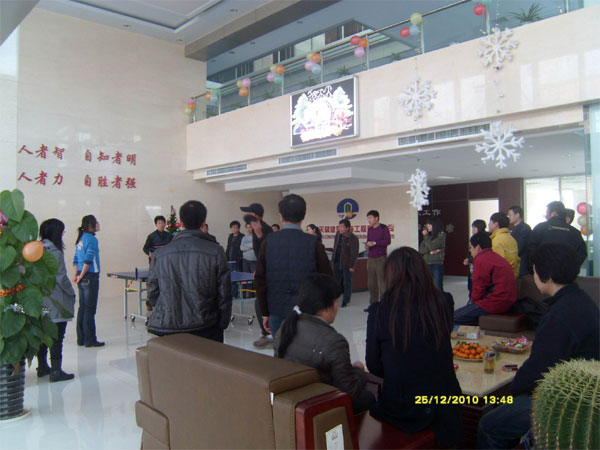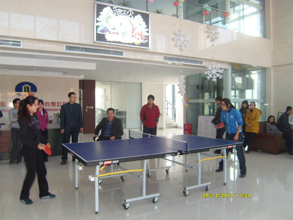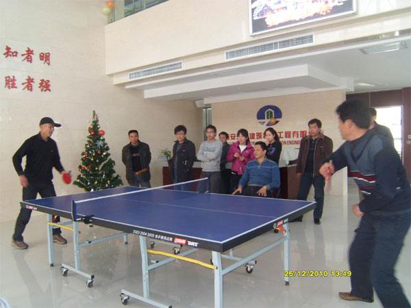 12月25日下午,我天幕公司在工會以及辦公室人員的精心組織下,圣誕乒乓球賽正在舉行,工程部副總朱峰為場內(nèi)裁判。這次活動得到了廣大員工的積極響應(yīng),大家踴躍報名,其中有30多人參賽。